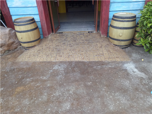 工完成,效果不錯,施工過程掌握三要素就能做出很好效果,一,混凝土和強化料一定要收光,收光,收光,越光越好,二,強化料要撒厚一點,顏色重一點更有質感。三,施工面積不宜過大,掌握好混凝土濕度(盡量混凝土干點再壓模,這樣圖案才逼真自然)